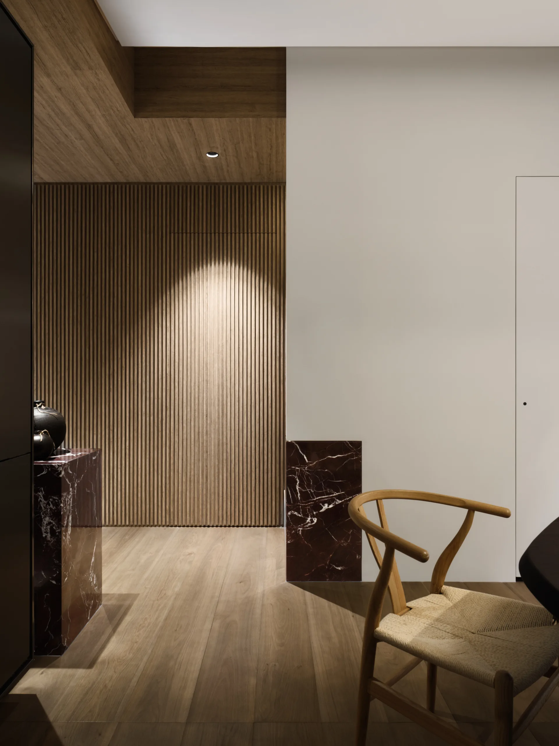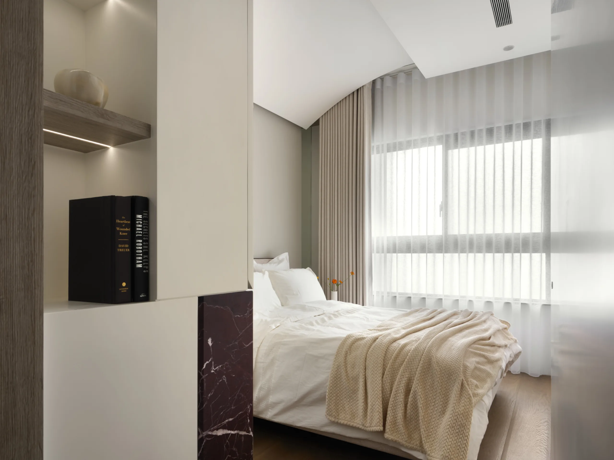 In this meeting of material and light, the home becomes a serene canvas—soft, composed, and rich with emotional warmth.